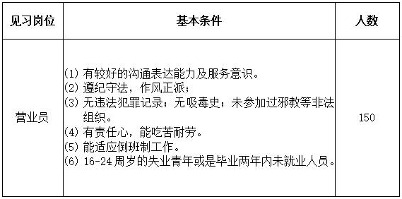 為滿足工作需要,現(xiàn)招聘下列崗位見習工作人員。