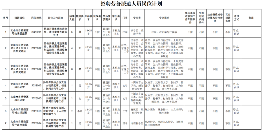 公開招聘人員20名。具體崗位、人數(shù)、資格條件等詳見《文山州財(cái)信人力資源有限公司公開招聘勞務(wù)派遣人員崗位計(jì)劃》(以下簡稱《崗位計(jì)劃》),報(bào)考人員可通過“文山人才網(wǎng)”微信公眾號、文山人才網(wǎng)、“文山市城鄉(xiāng)投”公眾號查看招聘信息。
